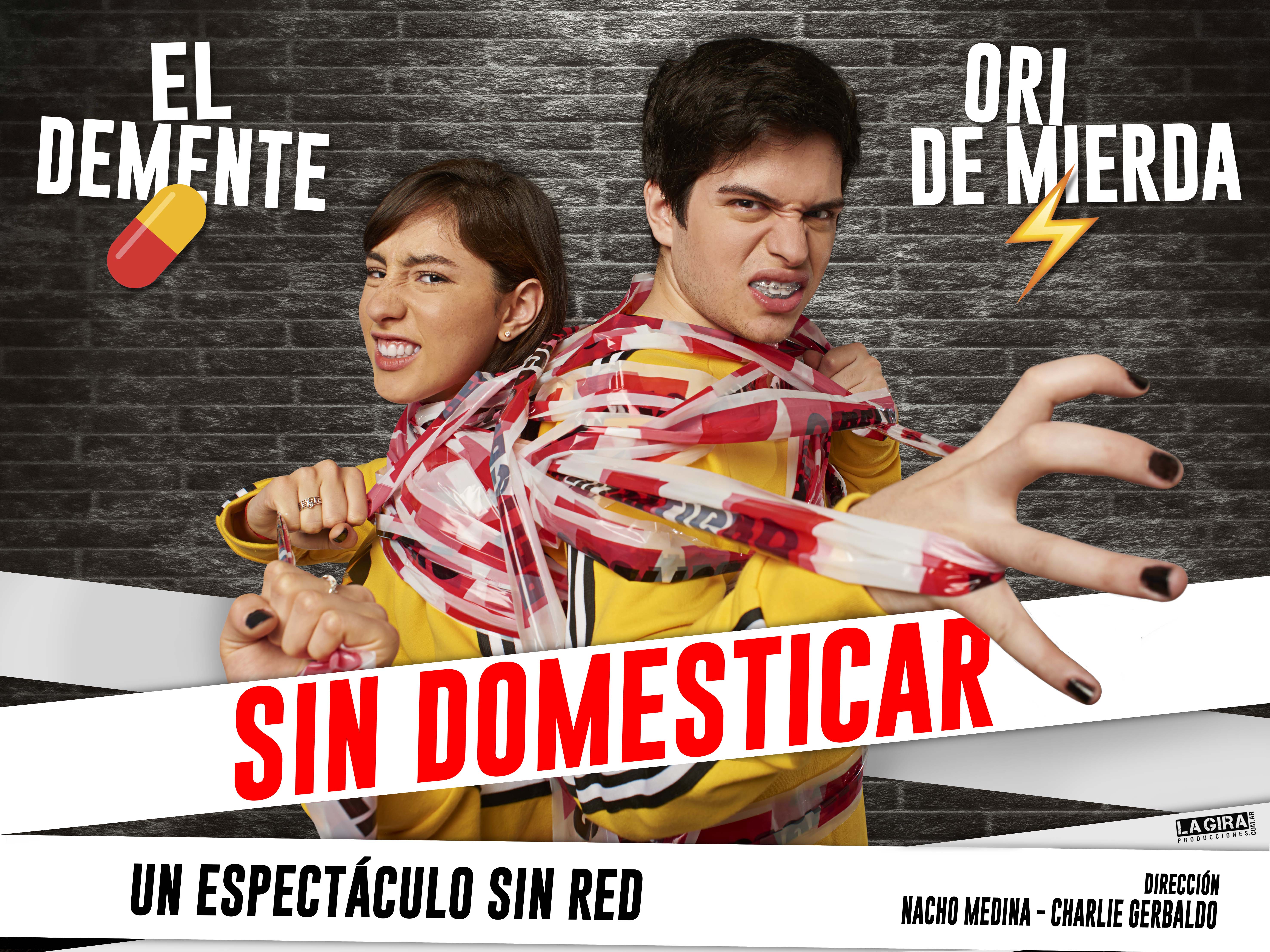 SIN DOMESTICAR con Martín DEMENTE & Ori DE MIERDA, dos youtubers que rompen todos los moldes y estructuras convencionales. Al unirse con un mismo fin, descubren a través del juego que aun están “sin domesticar”. Así, sin mostrar una rebeldía consiente, plasman una obra teatral al estilo de los “late shows” con diversos monólogos, sketches y cuadros musicales que van y viene desde su aguda y propia mirada, así desde la creación de sus personajes y entre la ficción y la realidad proponen un humor refrescante, acido, ágil; crítico y sorprendente.