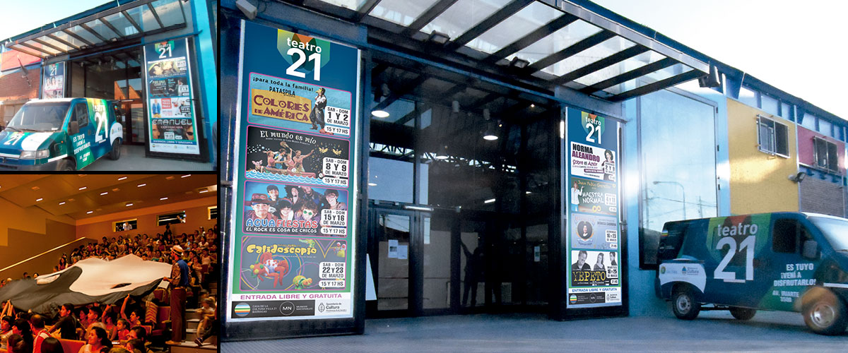 Entre el año 2014 y 2015 coordinamos la programación de 624 funciones de teatro para adultos e infantiles del ciclo "Teatro 21" en la Casa Central de la Cultura Popular. Contó con la con la participación de prestigiosos actores, músicos y bailarines.